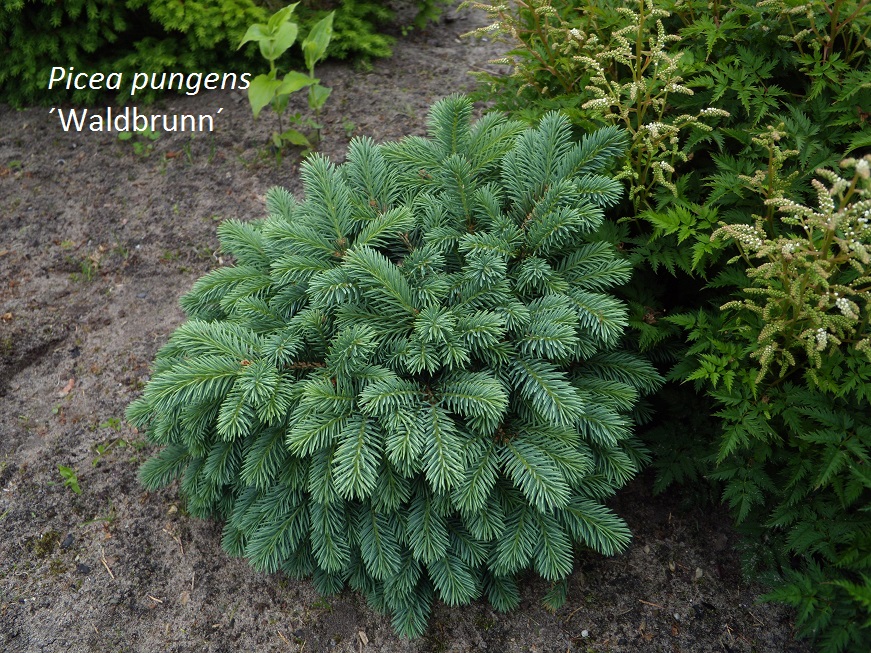 kerajas, hiljem koonusjas kuni 60 cm kõrgune hõbedane kääbusvorm |