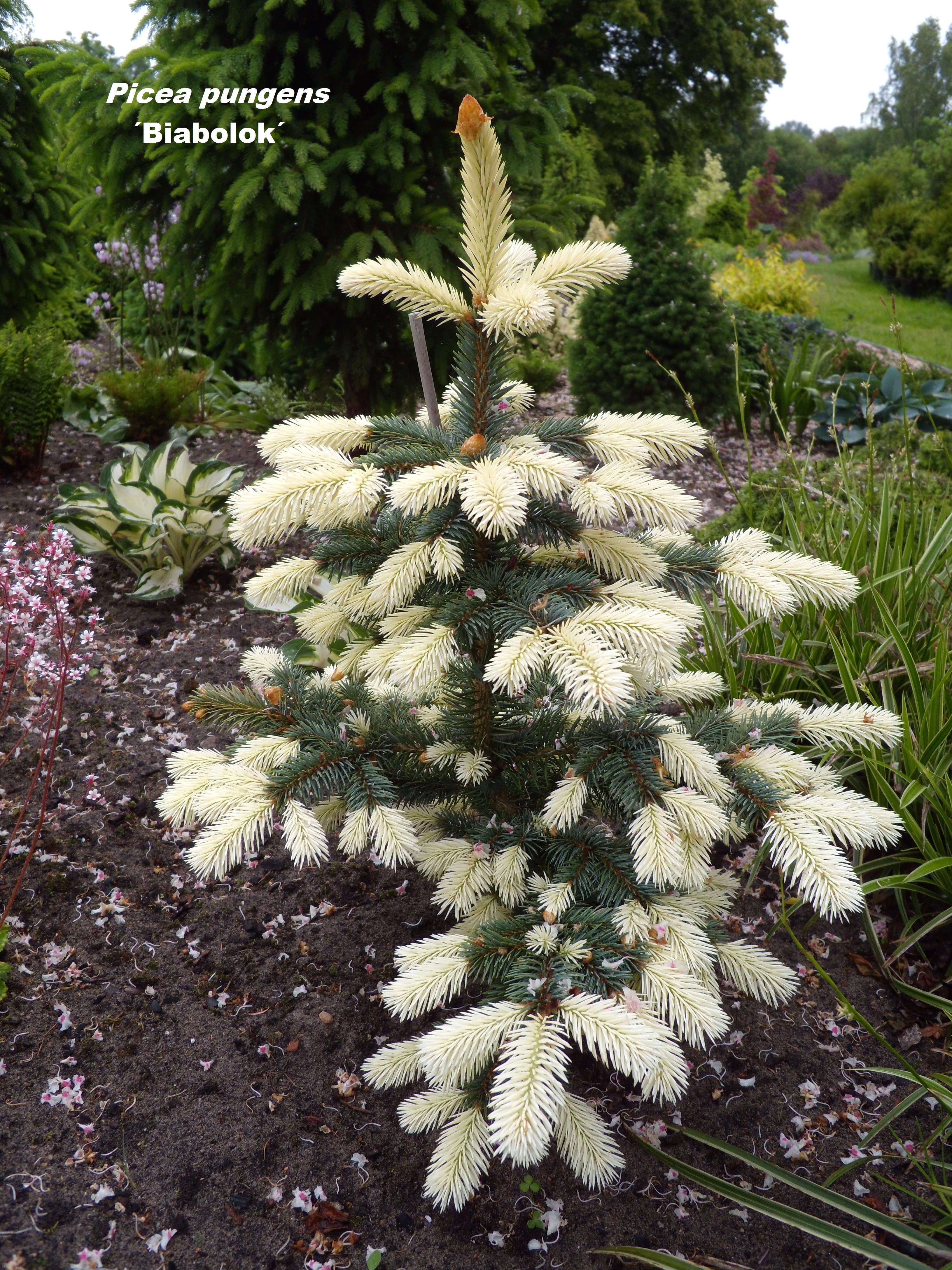 kerajas, hiljem koonusjas kuni 60 cm kõrgune hõbedane kääbusvorm |
